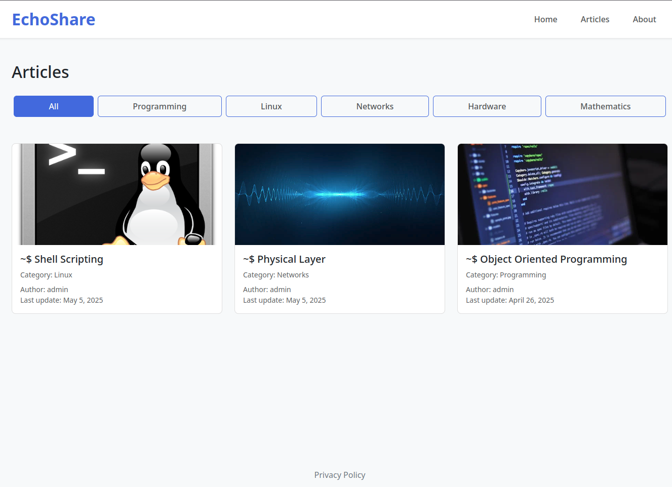 EchoShare is a simple article-posting platform built with Django, following the MVT architecture.